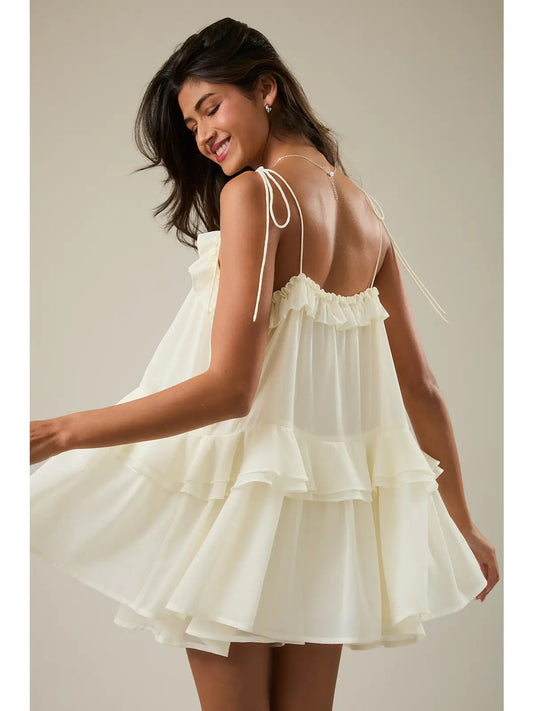 Ruffle Detail Shoulder Tie Flare Romper