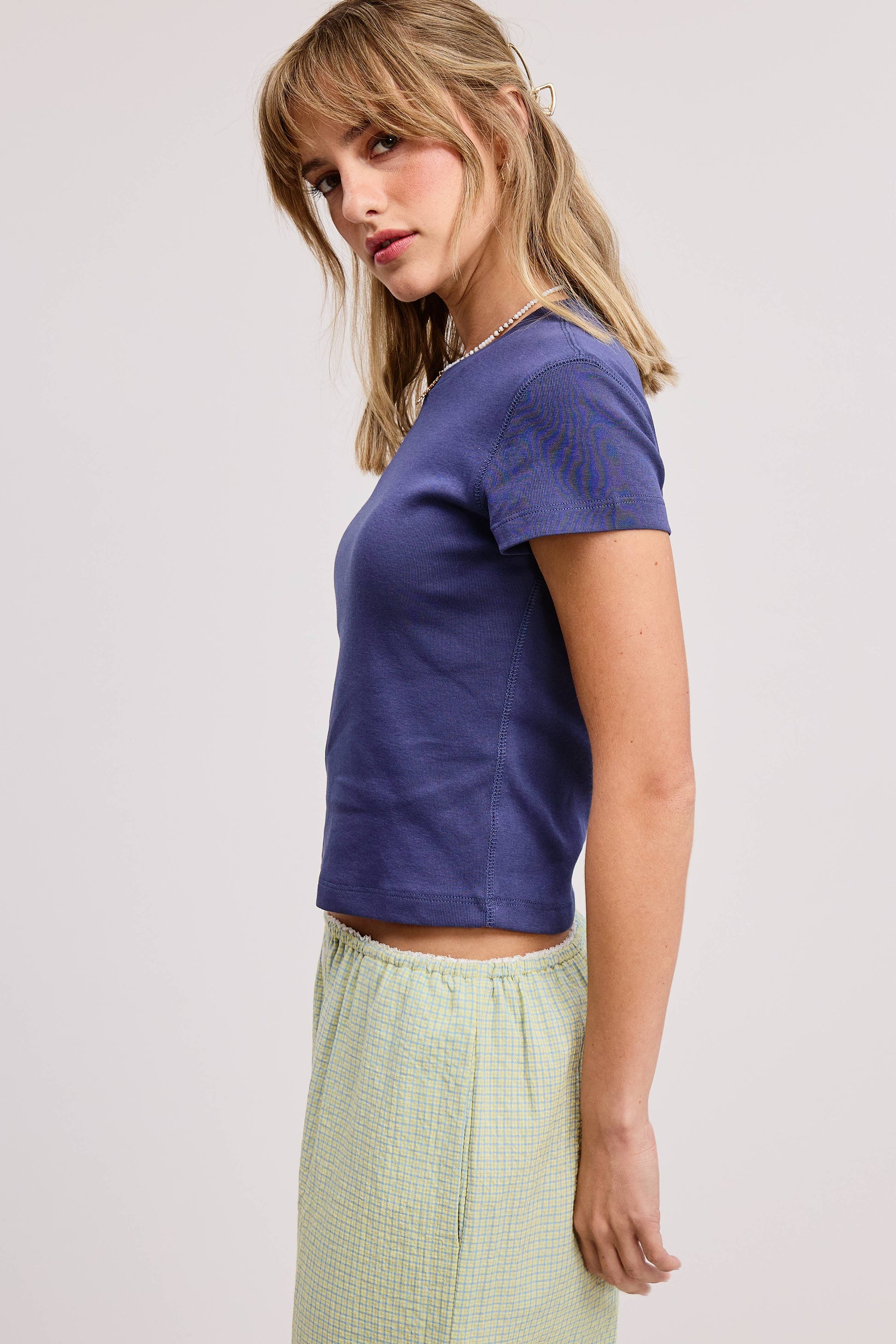 MIMOSA BASICS: short sleeve, round neckline, solid-knit crop top