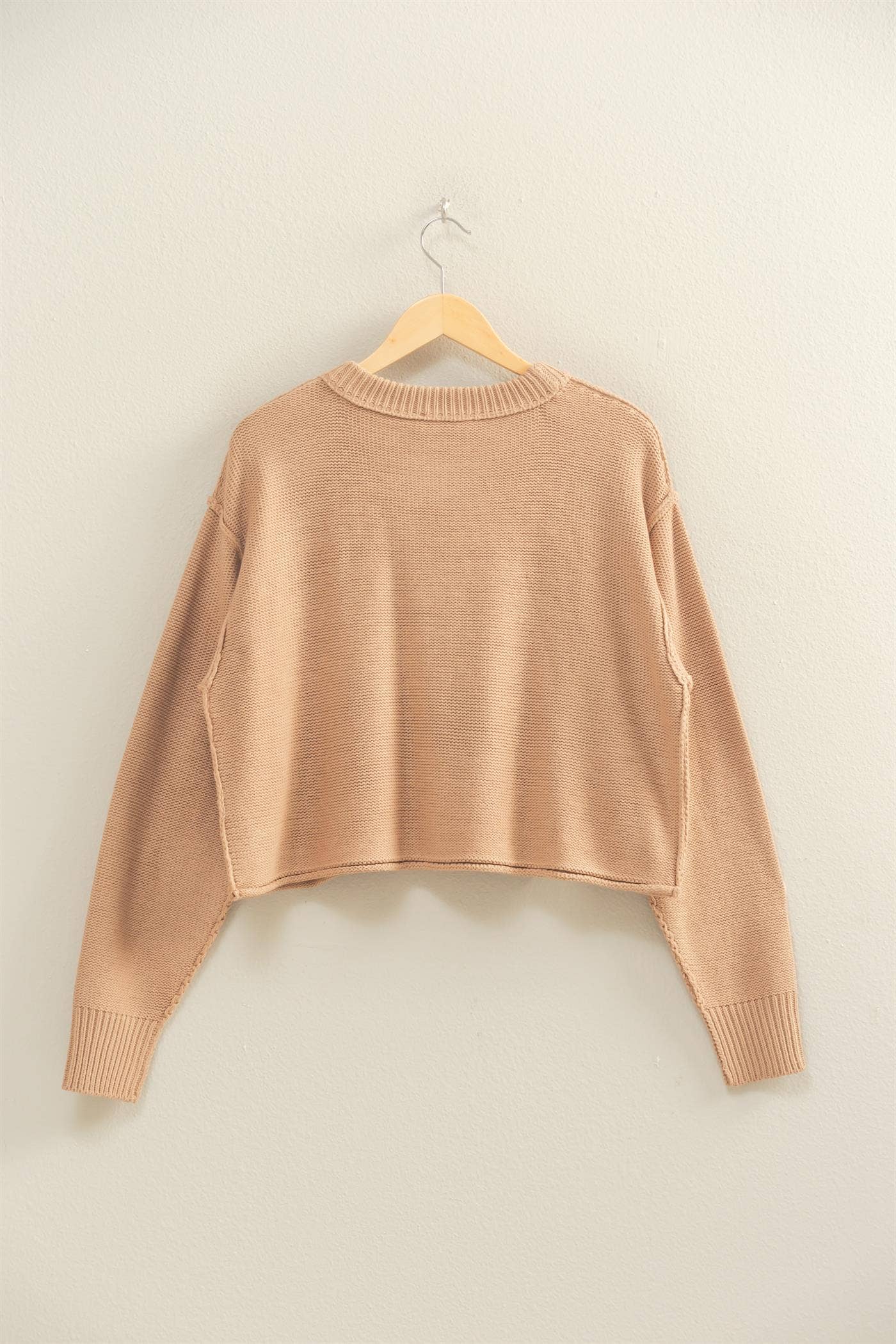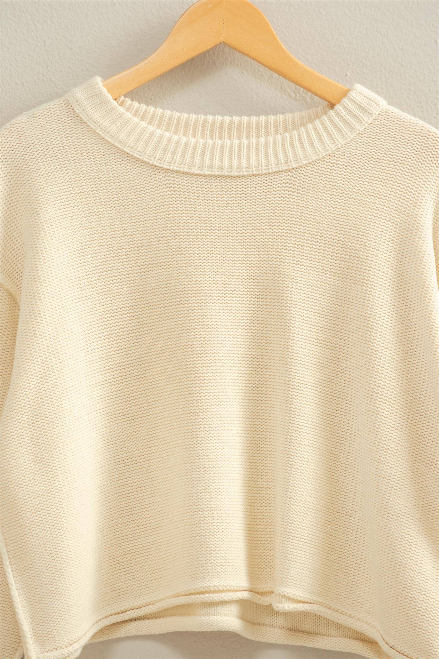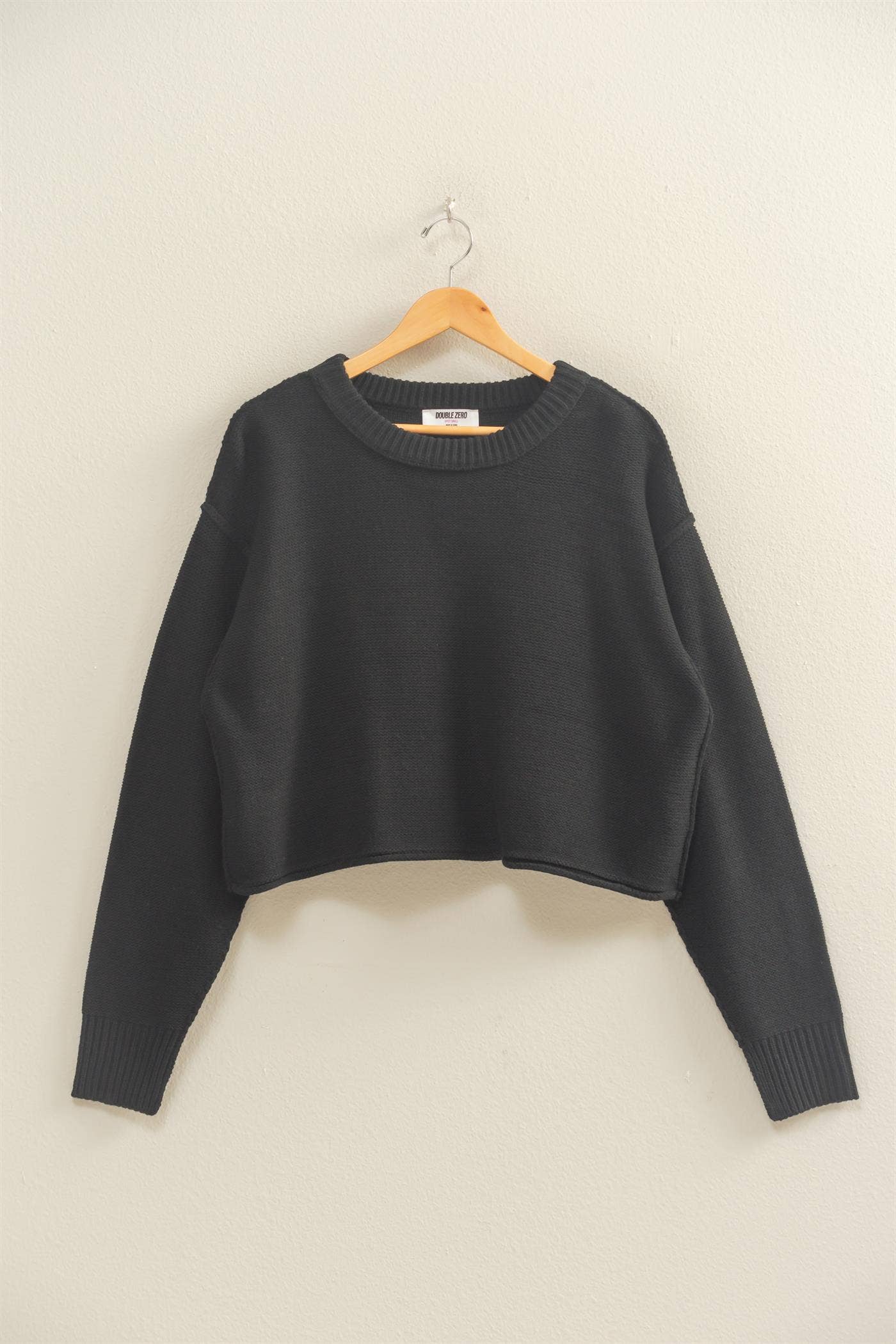 Embrace Casual Chic With This Cropped Oversized Knit Sweater. Featuring A Relaxed Fit And A Wide, Ribbed Crew Neck, This Sweater Offers Both Comfort And Style. The Drop Shoulders And Cropped Hemline Add A Contemporary Touch, Making It Perfect For Layering Over A Basic Tee Or Pairing With High-Waisted Bottoms. A Versatile Addition To Any Wardrobe, Ideal For Transitional Weather And Easygoing Days.