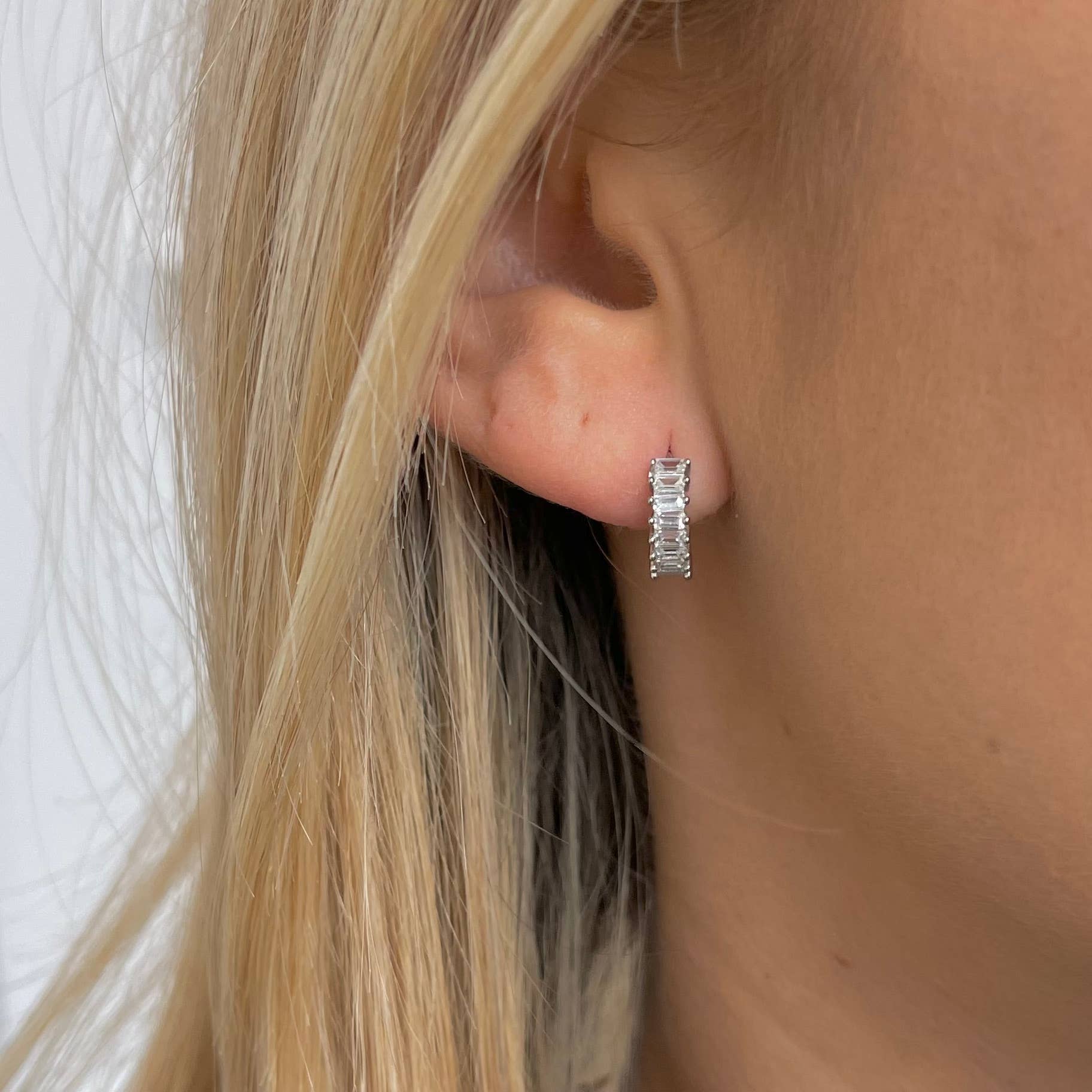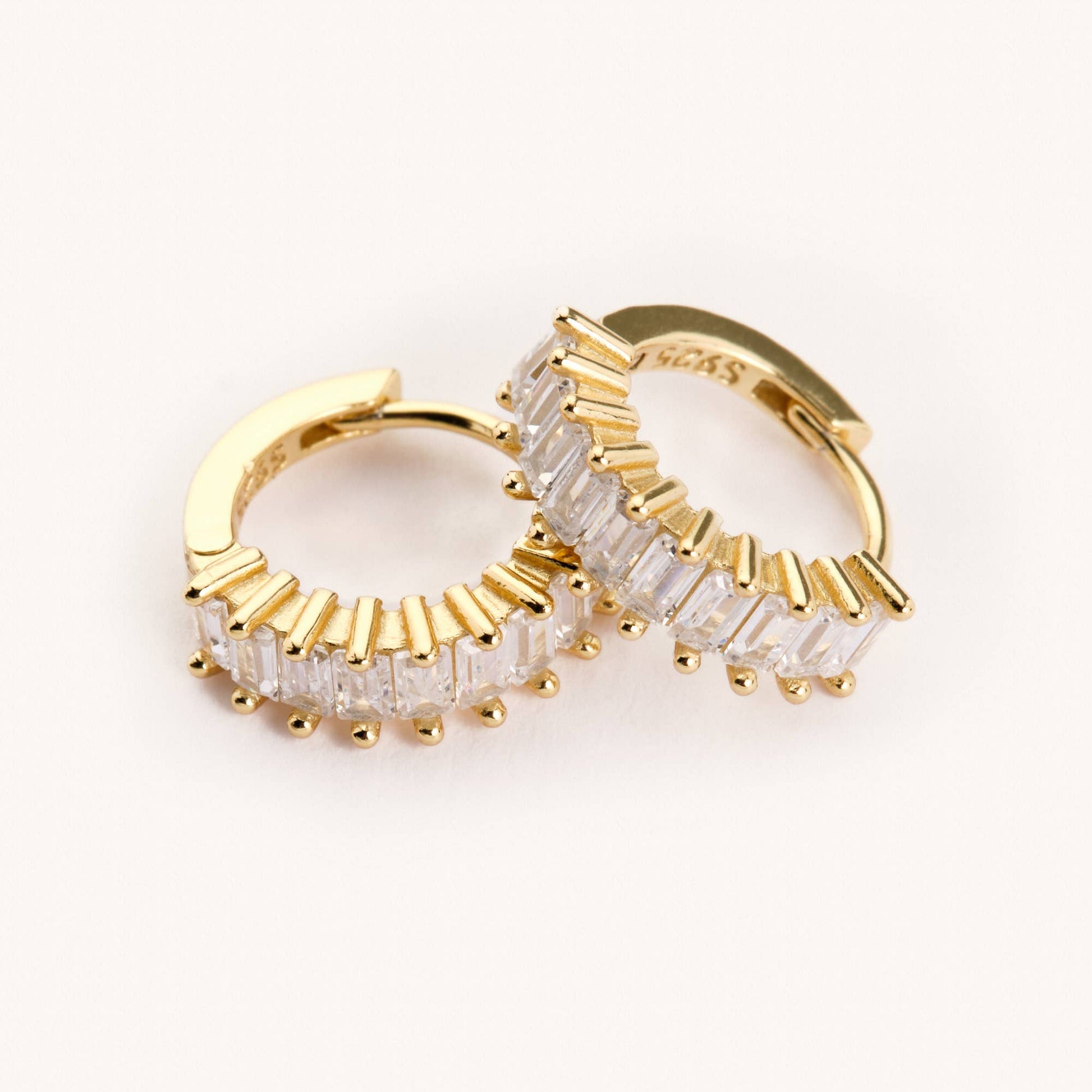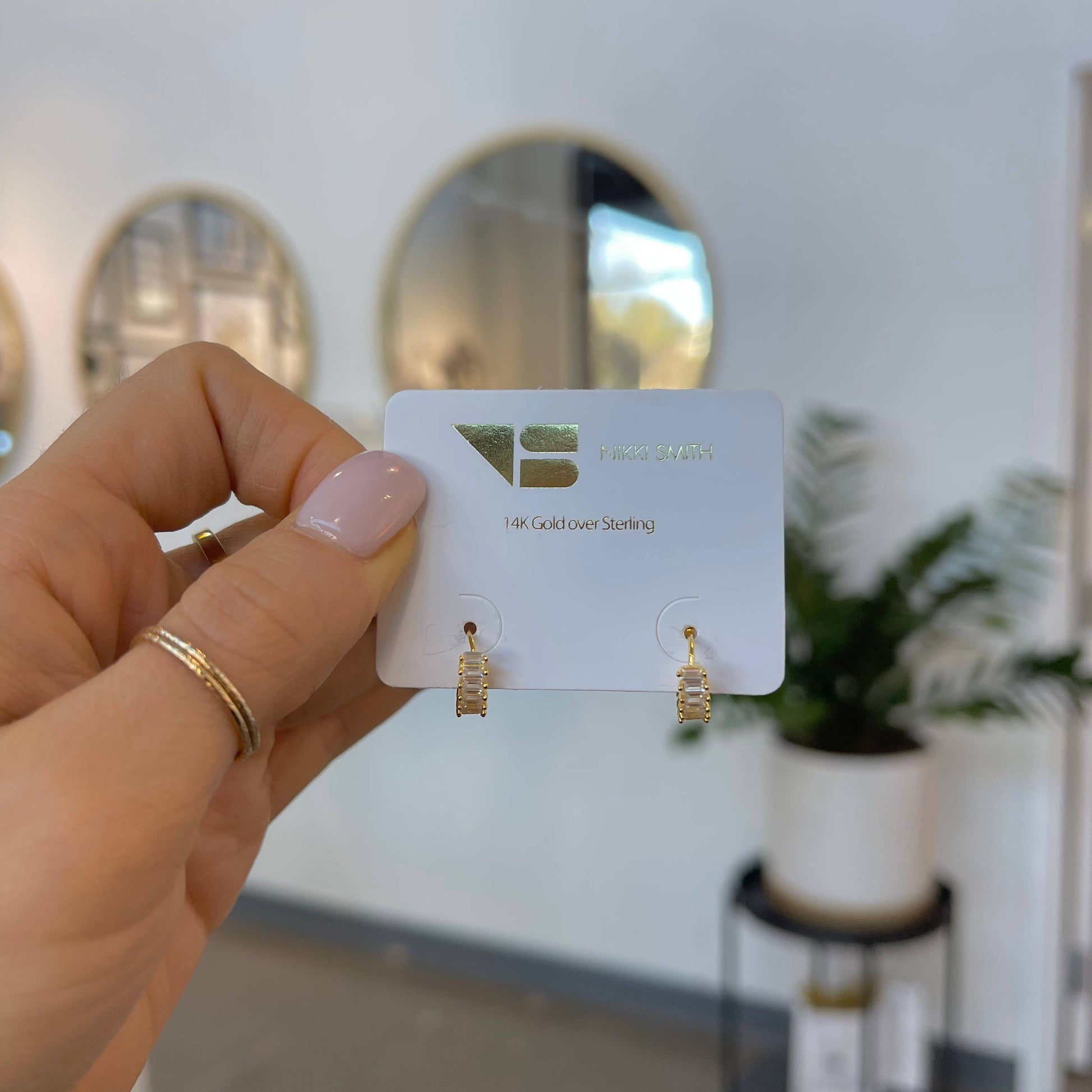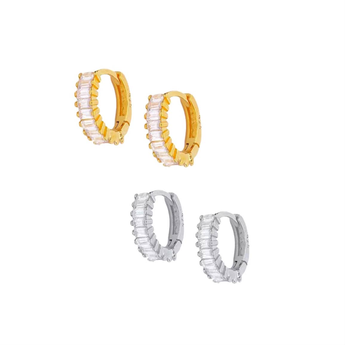 We can't get enough hoop huggies! This adorable pair hugs your ear with a dazzling look. Small yet beautiful, these are a purchase you can't pass up! Available in gold and silver.