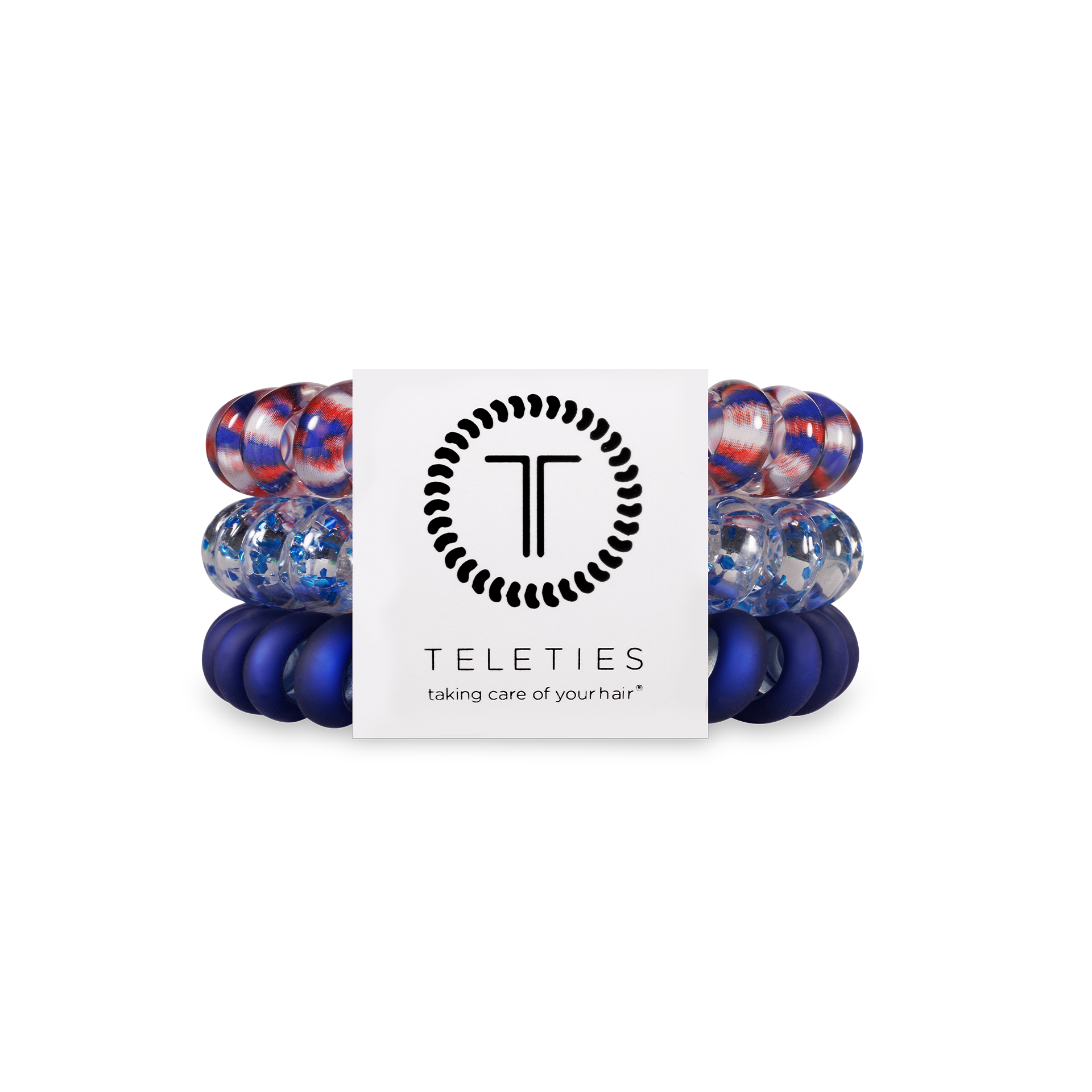 Hold your hair in place with ease and style! Fire-workin' It Large Hair Ties in red, white and blue offer a strong grip without damage, doubling as a stylish bracelet when not in use. Your new favorite hair essentials all year round.