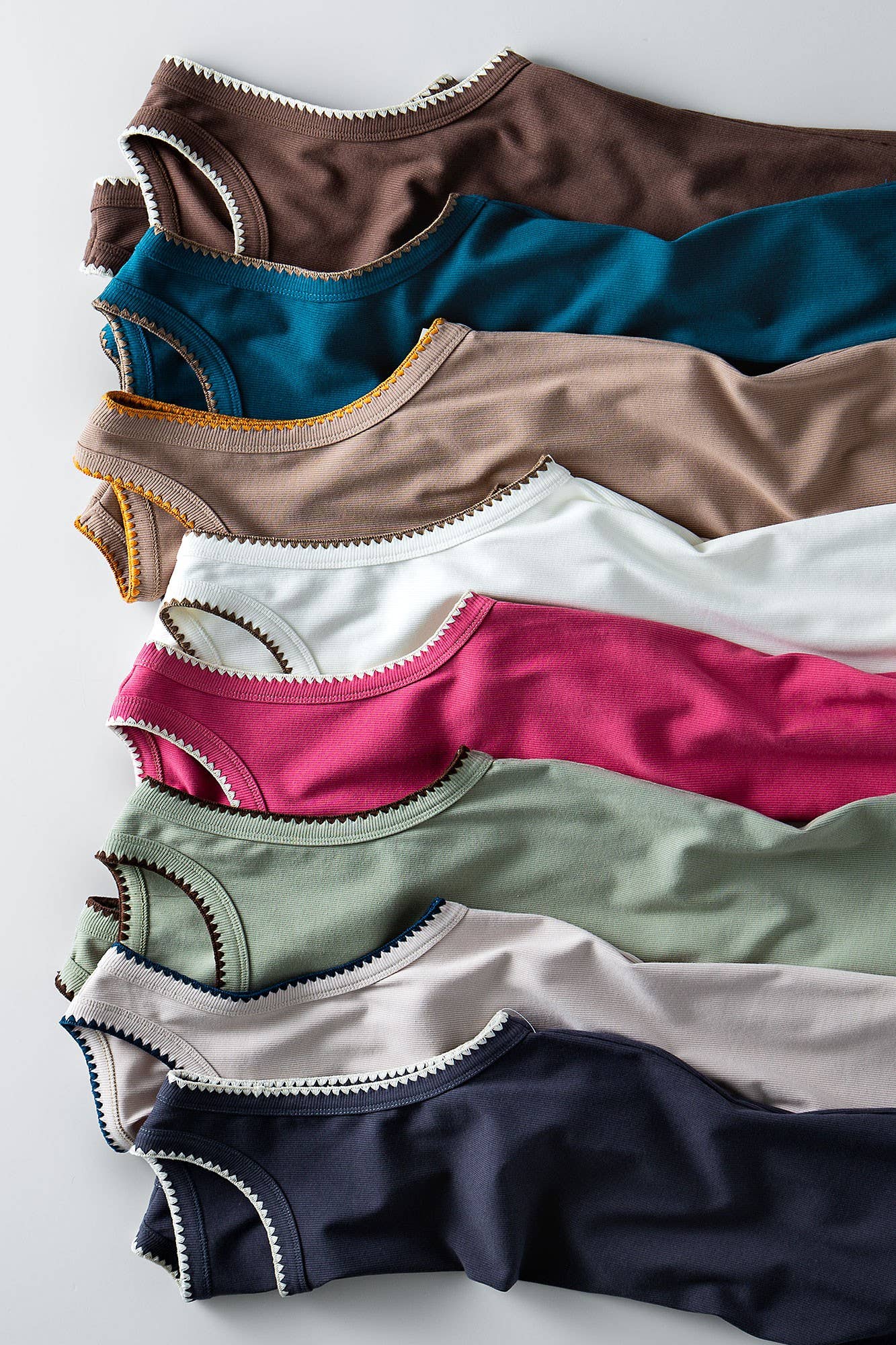 KNIT TANK TOP WITH CONT EMBROIDERED NECKLINE AND ARMHOLE