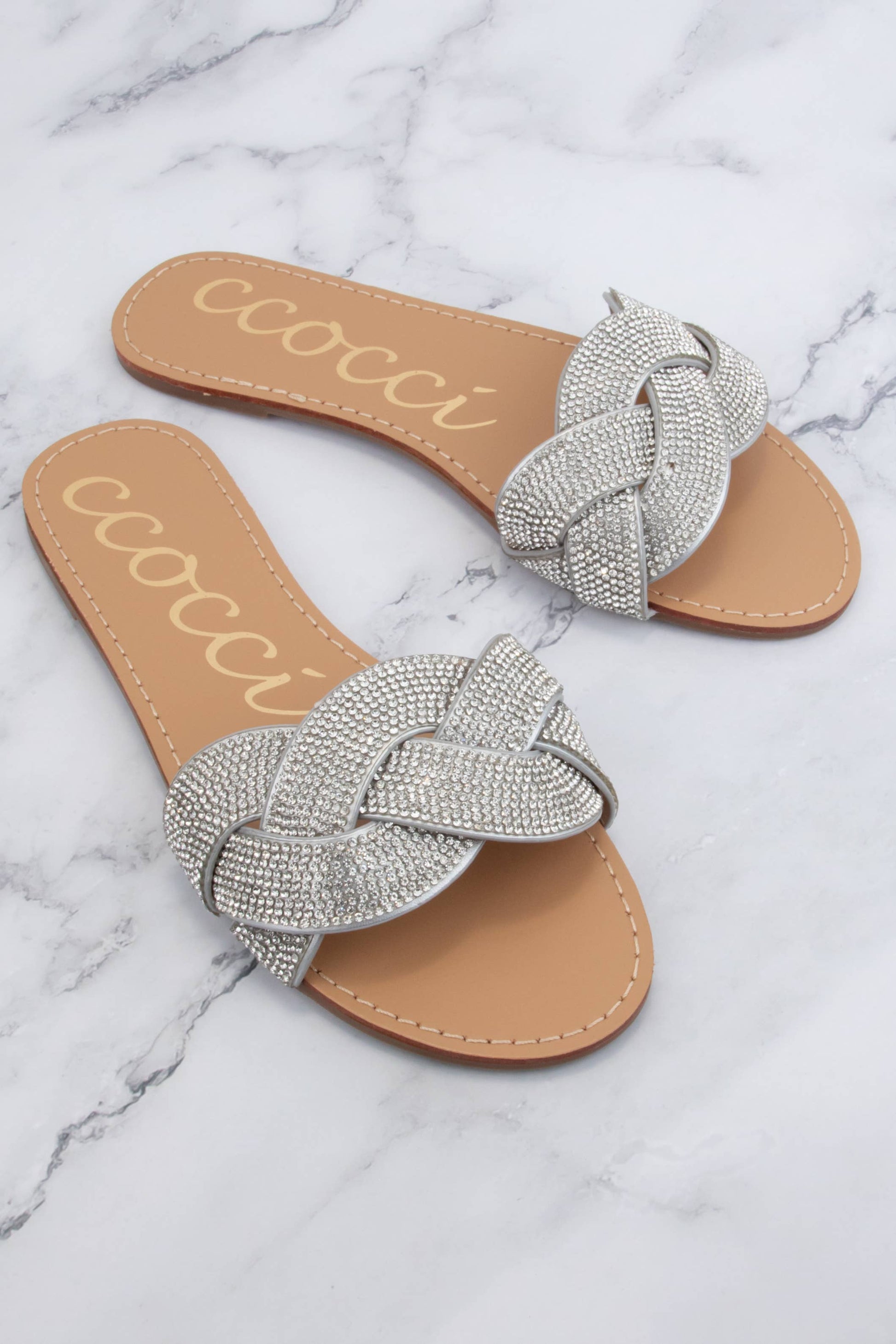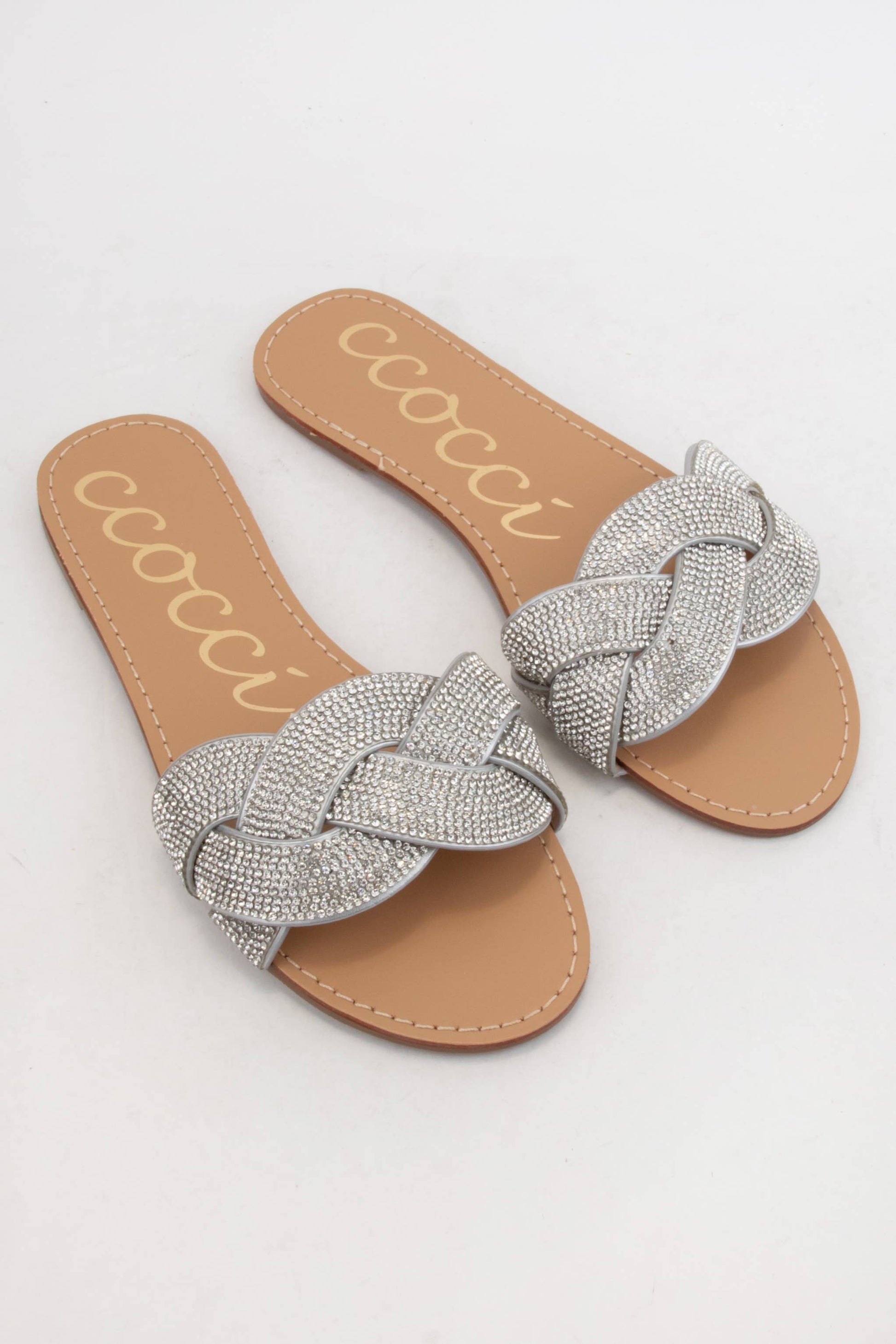 RHINESTONE DECOR TWISTED BOLD BAND UPPER SANDAL SLIDE